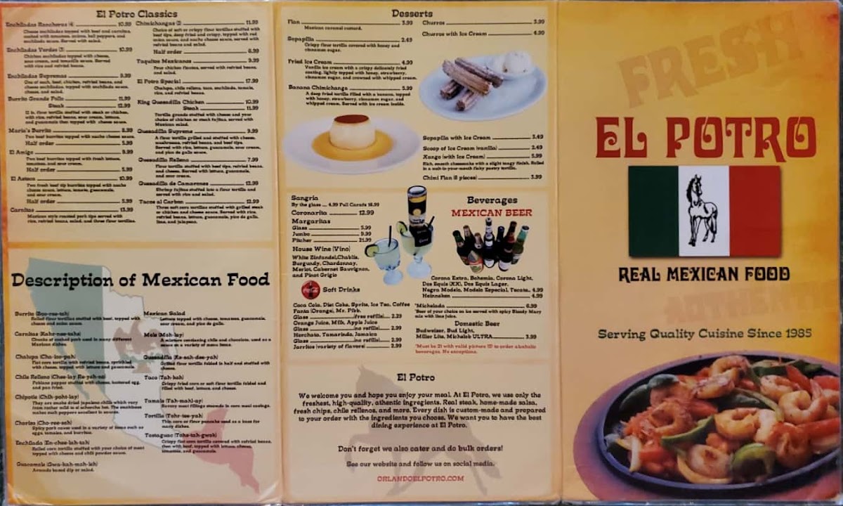 Welcome to El Potro Mexican Restaurant in Winter Park, where vibrant flavors meet heartfelt hospitality. Located at 501 N Orlando Ave, this charming eatery has been a beloved staple for over 20 years, captivating locals with its authenticity and warmth.